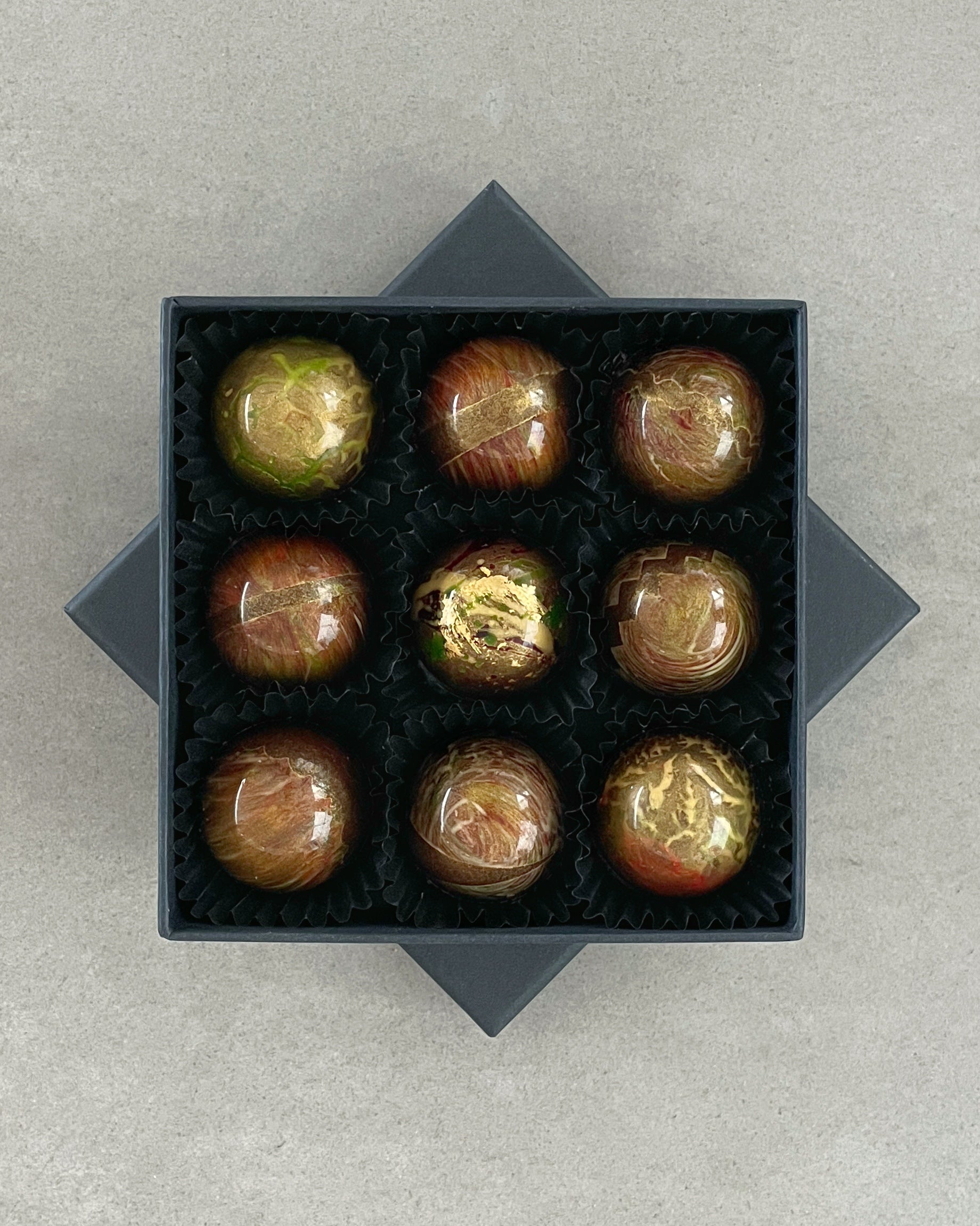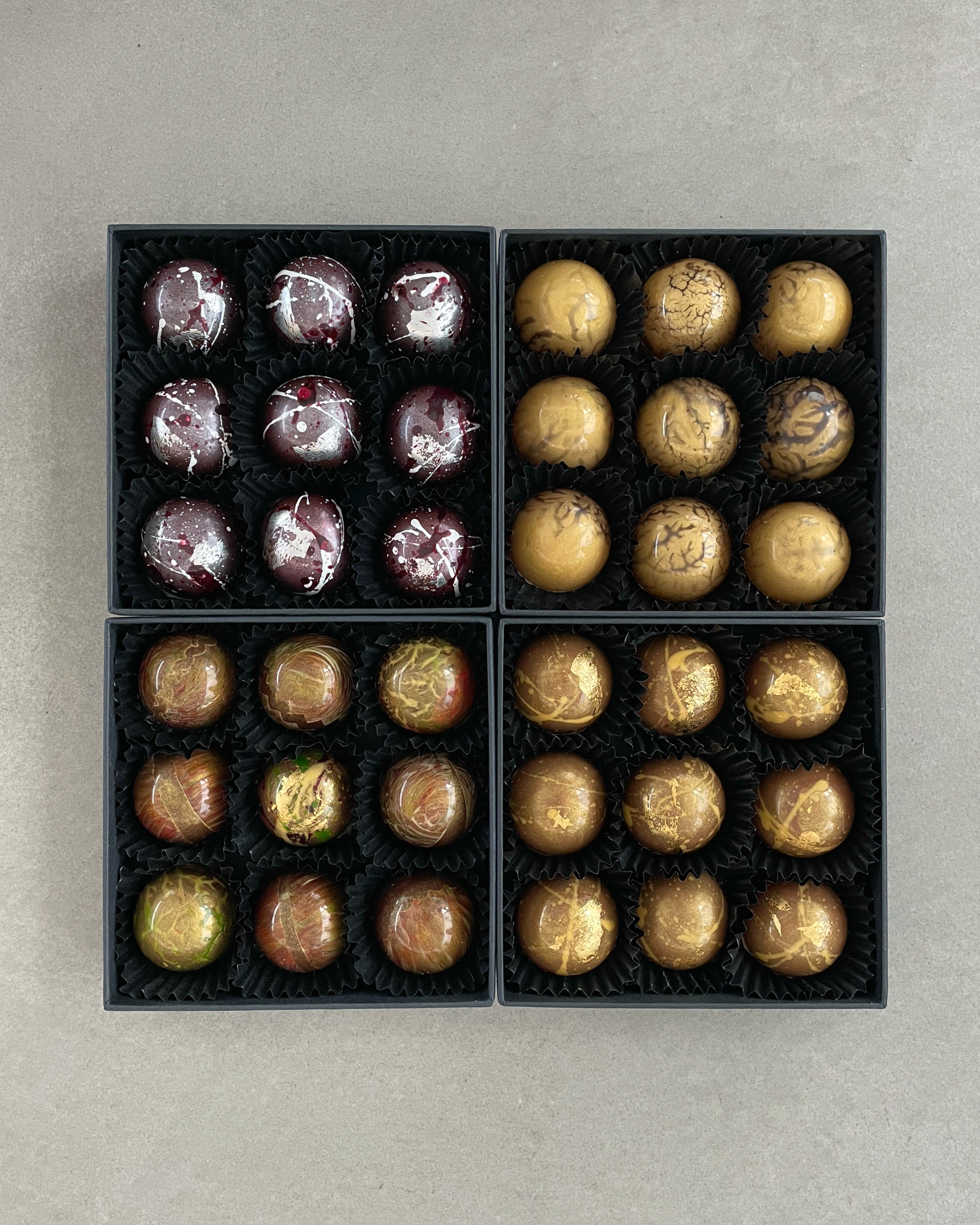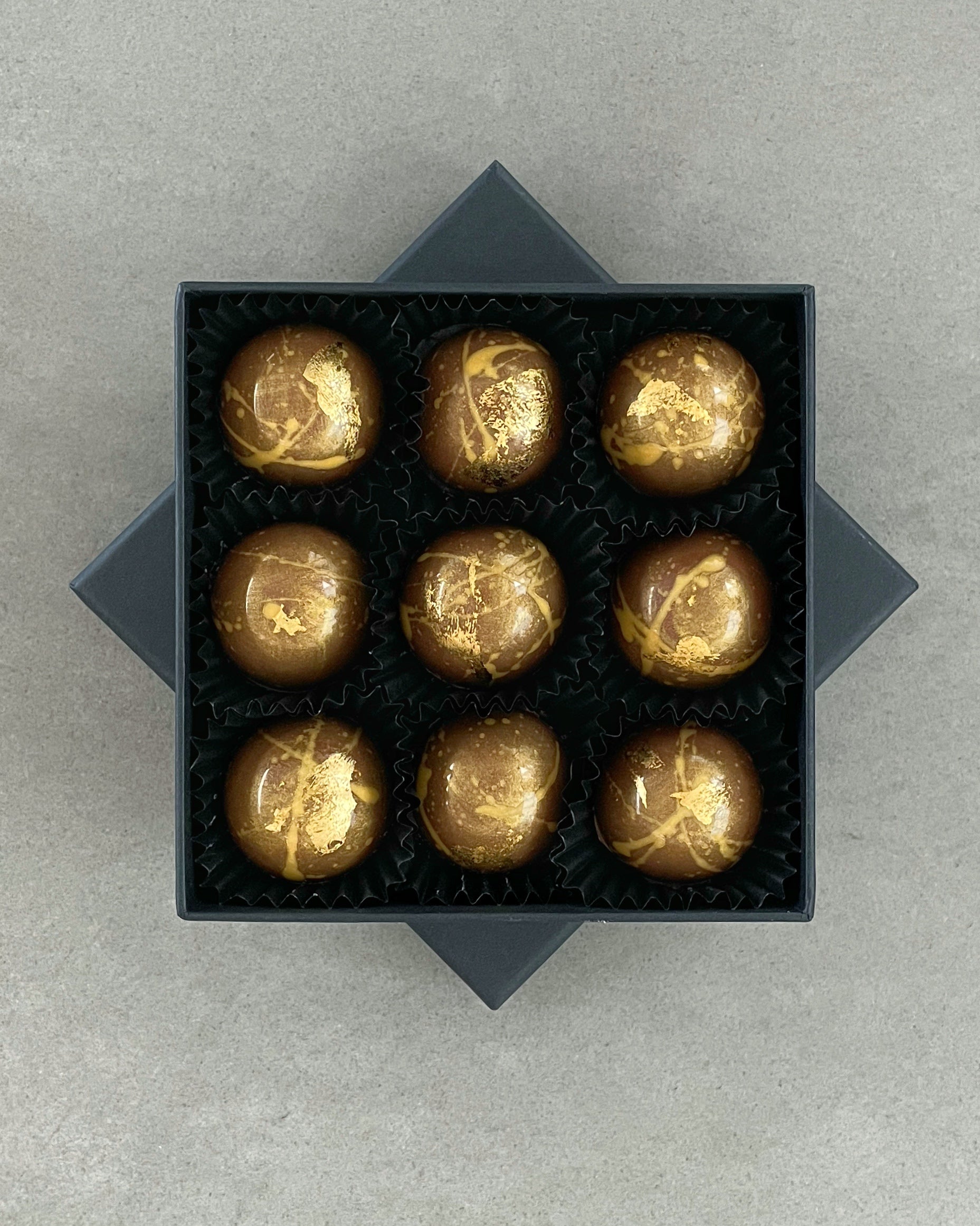 - Belgian milk chocolate with Marc de Champagne Truffles, decorated with 24ct gold leaf